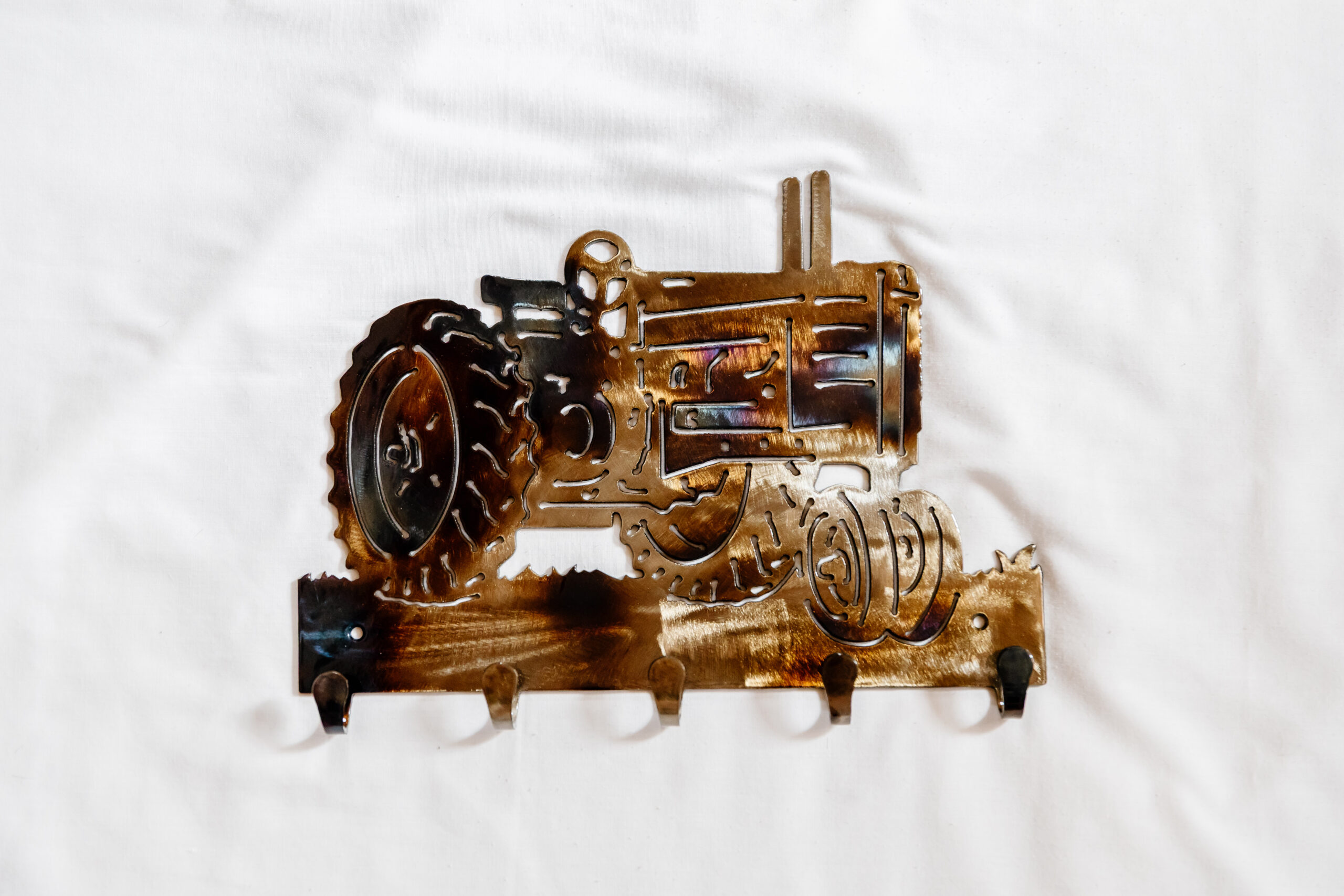 Handcrafted metal key hook with a Tractor design. Keeps keys organized and adds wilderness style. Built to last — Size: 6″ x 10″