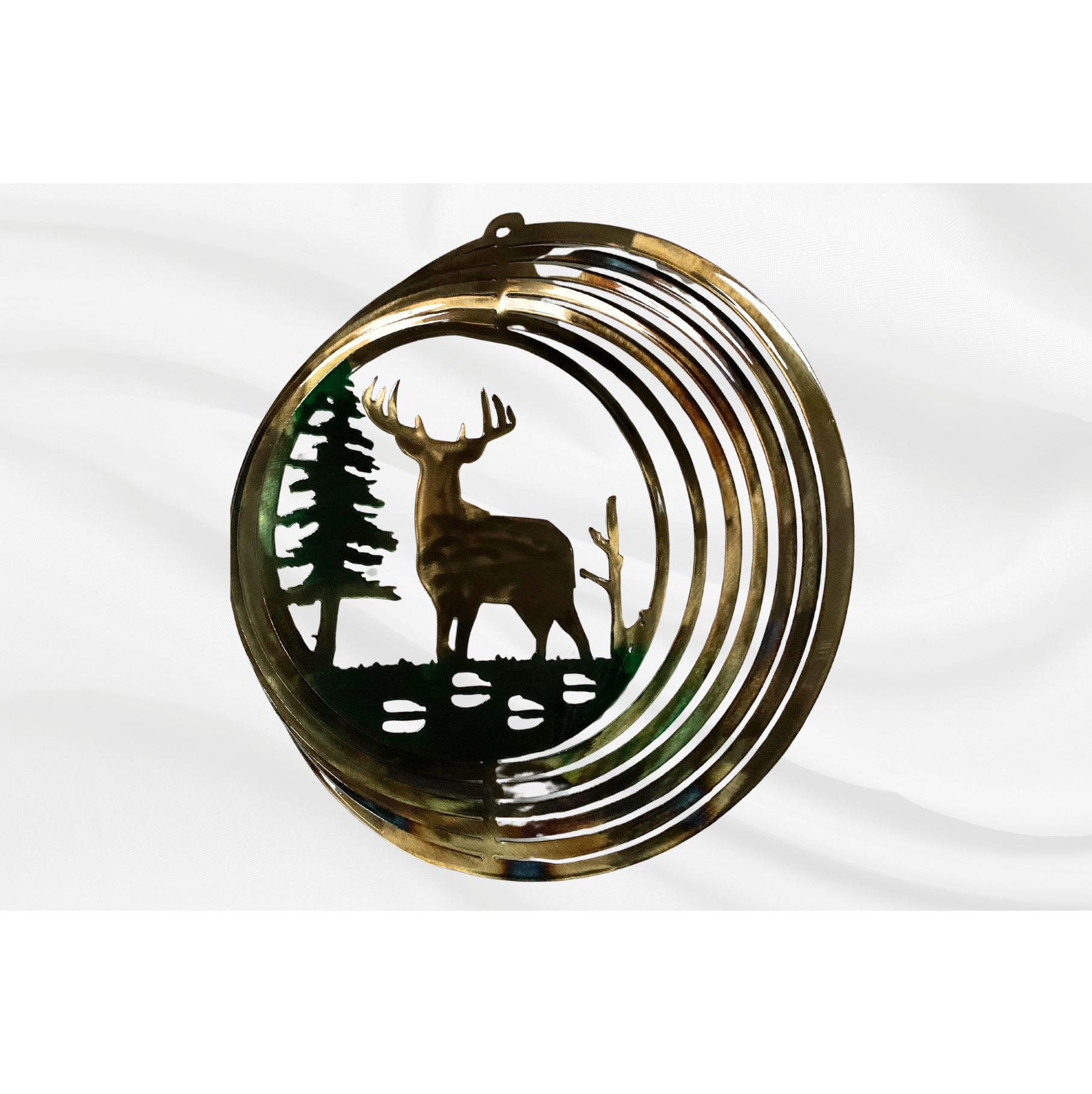 Celebrate the beauty of nature’s form with The Antler Twirl wind spinner. Handcrafted from metal, this piece provides lasting beauty. Its high-quality coating ensures durability indoors or out. This spinner’s movement in the breeze adds a dynamic visual element to gardens, yards, porches, and patios, creating a captivating focal point that changes with the wind and light. It holds symbolic meaning associated with the grace and energy found in the wild. As it spins, it may create subtle sounds, contributing to a calming atmosphere outdoors. Showcase your appreciation for wildlife and the feeling of the wilderness.